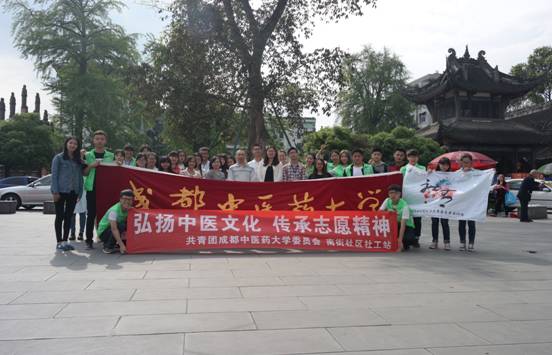 4月9日,由校团委主办,成都市义工联合会、南街社区卫生服务中心协办的主题为“弘扬中医文化、传承志愿精神”蒲公英进基层系列志愿服务活动在成都市温江区文庙广场拉开序幕,开展了专家义诊、免费推拿按摩、测量血压血糖、中医保健知识宣讲与竞答、养生功法展示等活动,上千名群众受益。