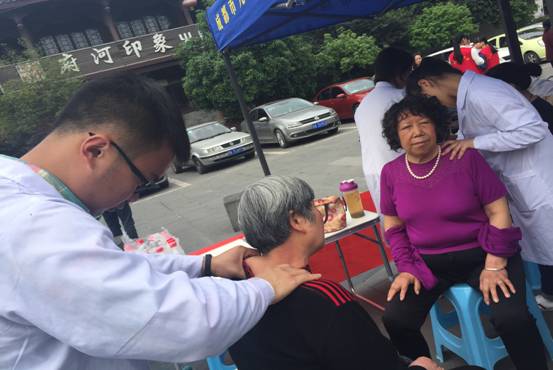 校功法队以精彩的五禽戏表演拉开活动序幕。参加义诊的专家有学校附属医院副主任医师杜怀斌、副主任医生胡泉以及针灸推拿学院研究生张达等。活动中,志愿者为社区居民开展了推拿按摩服务,向群众发放并讲解实用的中医药文化宣传手册,还通过中医健康知识有奖问答形式,为社区居民普及中医药文化知识并传播传统养生文化。校红十字协会的同学还进行了预防艾滋病的宣传。