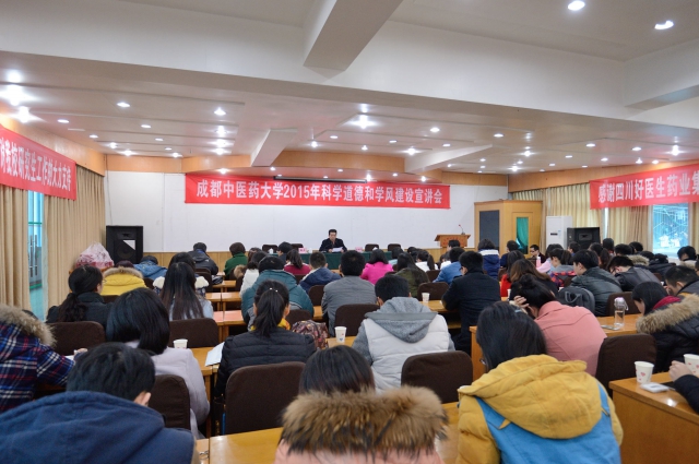 1月7日下午,学校举行研究生科学道德和学风建设宣讲报告会暨企业冠名奖学金颁奖典礼。学校党委书记马跃荣作主题宣讲,副校长彭成、成都华神集团、四川好医生集团及北京固生堂有限公司有关领导、研究生院及相关导师、研究生120余人参加会议。