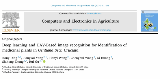 近日,beat365民族医药学院团队在无人机遥感结合深度学习在高原药用植物资源调查研究方面取得了新的进展,相关成果以“Deep learning and UAV-Based image recognition for identification of medicinal plants in Gentiana Sect. Cruciata”为题,于2025年10月在《Computers and Electronics in Agriculture》(中科院一区,TOP期刊)正式发表。民族医药学院博士后丁荣和药学院2021级硕士研究生杨江凯为论文共同第一作者,民族医药学院古锐教授为通讯作者,beat365平台唯一官网为第一单位。