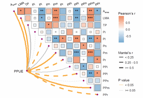 论文“Optimized phosphorus partitioning enhances phosphorus use efficiency in strip-intercropped soybean”揭示了在玉米-大豆间作系统中,优化内部磷分配以提高磷利用效率,比单纯增加间作大豆的磷吸收更为关键。磷高效利用基因型大豆展现出更优的时空磷分配模式:生殖生长阶段茎杆磷分配减少,叶片磷分配增加。磷高效利用基因型大豆降低了叶片脂质磷分配,而叶片代谢磷分配增加。此外,磷高效利用基因型大豆具有更强的结构稳定性,表现为更高的比叶重。通过优化磷分配与叶片结构,磷高效利用基因型大豆在典型间作系统的低光照条件下实现了更高的光合速率和磷利用效率。更强的耐荫性赋予间作大豆更高的磷利用效率,这些发现为在光照受限环境中培育磷高效利用大豆品种提供了理论指导和实践启示。