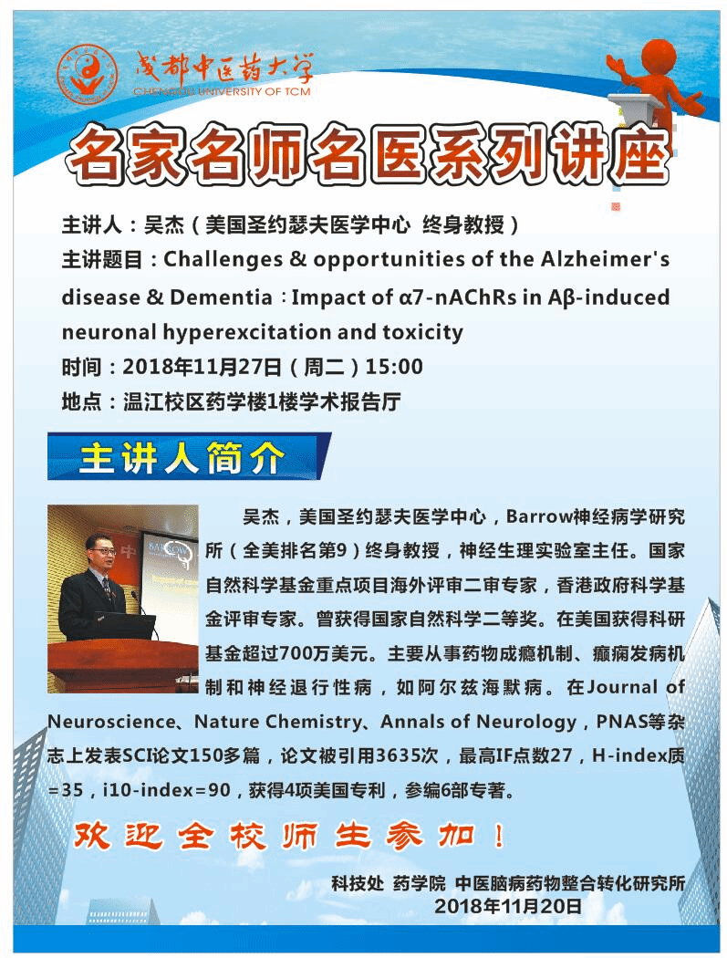 名家名师名医系列之吴杰教授讲座 发布时间:2018-11-26 09:35:00 浏览次数: 次 【字体:小 大】 【打印正文】 上一条:胡义扬教授应邀来beat365作国家自然基金选题及书写讲座 下一条:泰国 Chansuda Wongsrichanalai医生来校作学术报告