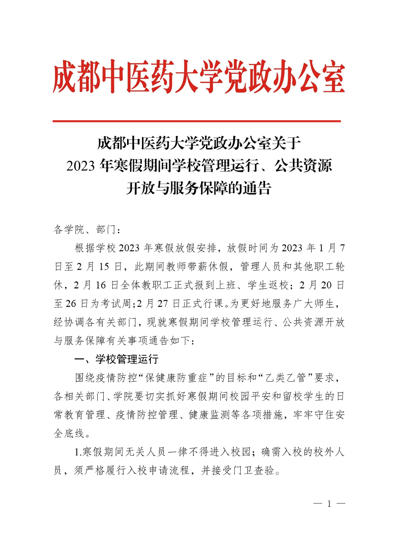 beat365平台唯一官网党政办公室关于2023年寒假期间学校管理运行、公共资源开放与服务保障的通告 发布时间:2023-01-09 21:03:19 浏览次数: 次 【字体:小 大】 【打印正文】 上一条:beat365平台唯一官网关于与21家单位开展高等学历继续教育校外教学点合作办学的公示 下一条:beat365平台唯一官网第二附属医院信息化软件市场调研公告