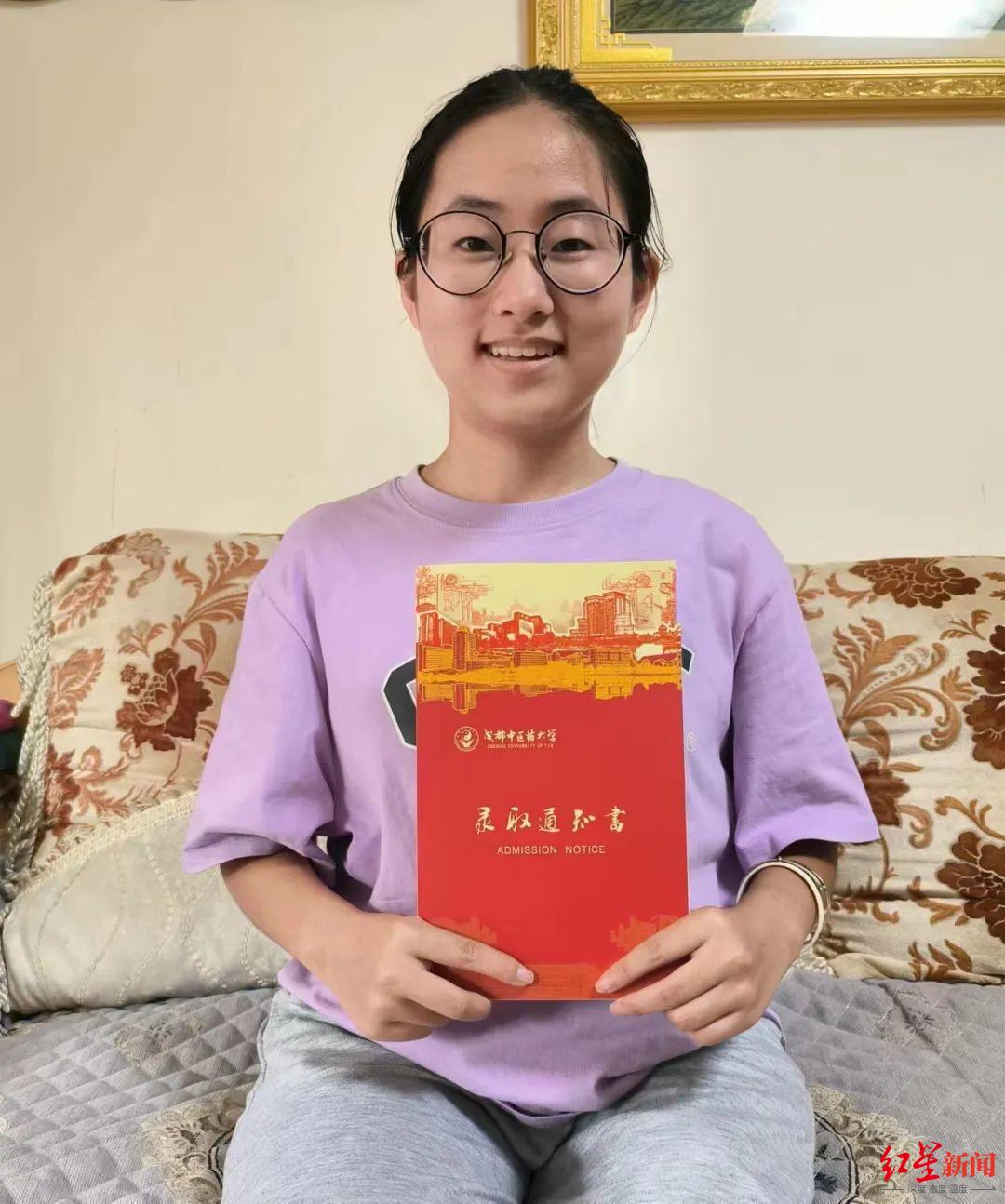 ↑朱宇和她的大学录取通知书