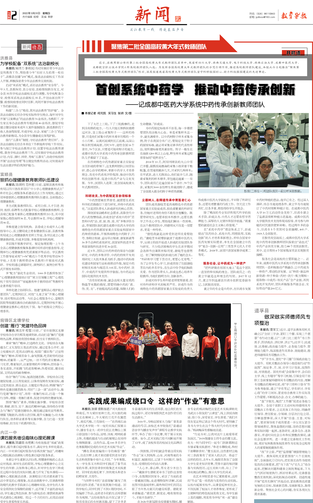 在西南特色中药资源国家重点实验室主任彭成的带领下,这支教师团队以刻苦钻研、潜心治学的精神,革新中药学人才培养理念、攻克中药系统评价瓶颈、推动中医药科技创新传承、促进中医药产业与文化发展。今年,该团队入选第二批全国高校黄大年式教师团队。