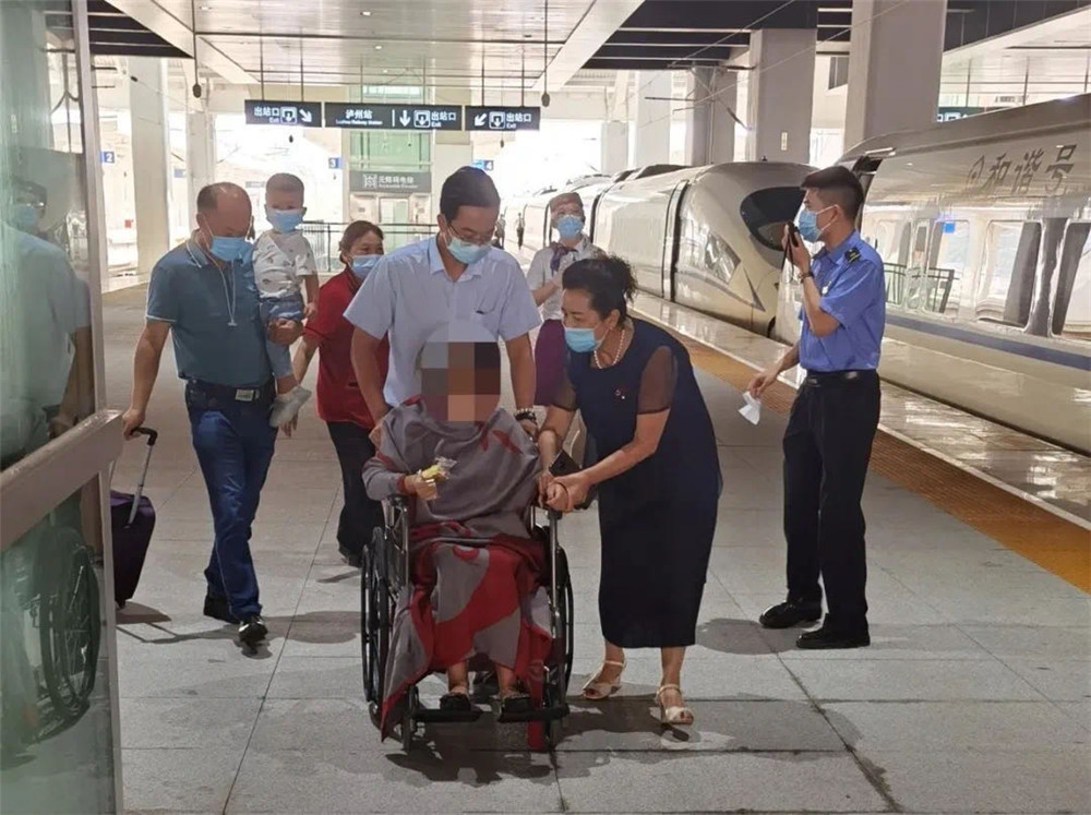 在专家组和列车长、热心乘客等共同努力下,呼叫了泸州高铁站120救护车,其间张虹全程陪护病人,直至将病人送上西南医科大学附属中医医院的救护车她才放心离开。