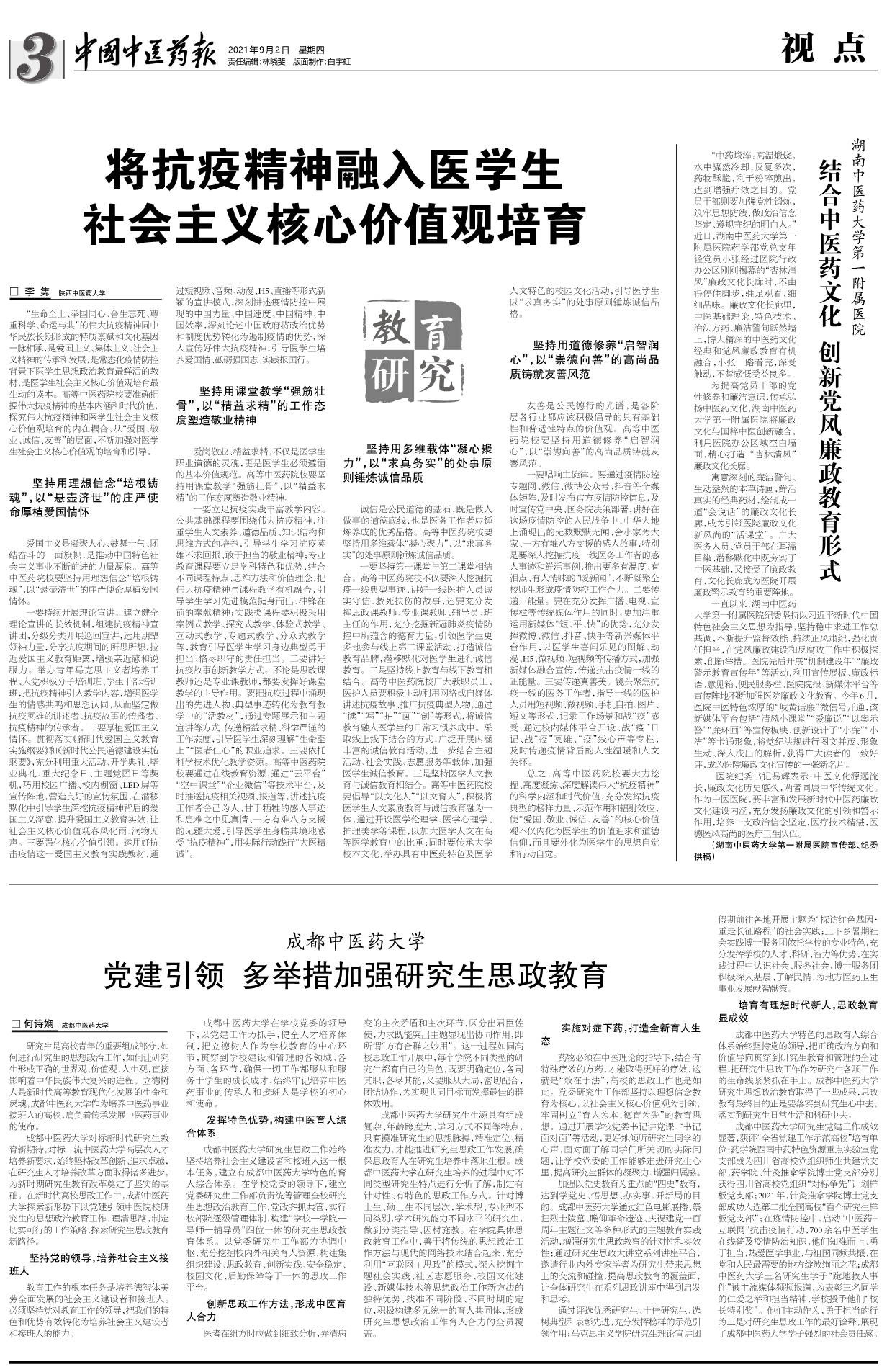 beat365平台唯一官网在学校党委的领导下,以党建工作为抓手,健全人才培养体制,把立德树人作为学校教育的中心环节,贯穿到学校建设和管理的各领域、各方面、各环节,确保一切工作都服从和服务于学生的成长成才,始终牢记培养中医药事业的传承人和接班人是学校的初心和使命。