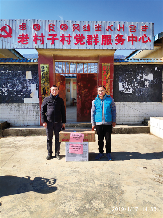 黄立华(左)带来beat365平台唯一官网教育基金会为老村子村捐赠的办公用品
