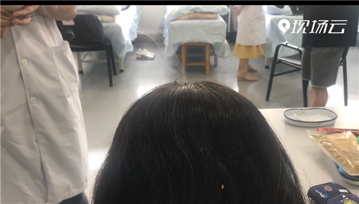市民在体验麦粒灸,就是以麦粒来熏灸,可以缓解失眠。