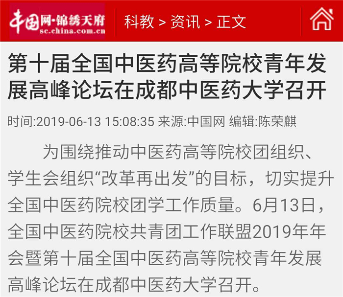 参会代表们在“强基层、增活力、转作风”的主题下进行了深入的交流,达成了广泛共识并发表《全国中医药院校共青团工作联盟2019年年会暨第十届全国中医药高等院校青年发展高峰论坛成都共识》。全国中医药院校共青团明确了坚持政治建团、思想立团、固本兴团、改革强团、从严治团的五大思想方针。