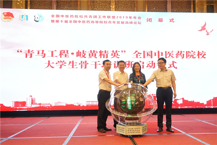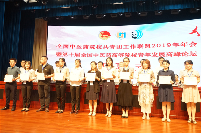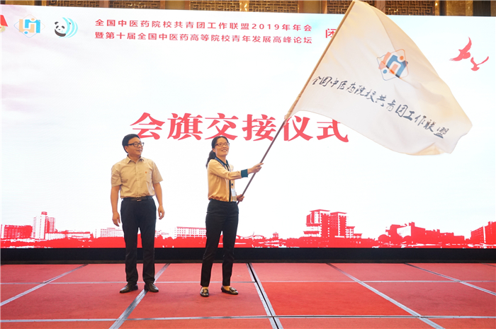 闭幕式上,大会为“远志杯”中医药院校大学生课外学术优秀成果和“优秀论文”颁发证书,并启动“青马工程•岐黄精英”全国中医药院校大学生骨干培训班。参会领导进行“感知温江行”授旗仪式,并宣读“全国中医药院校共青团工作联盟2019年年会成都共识”。最后,南京中医药大学接过会旗,标志着2020年年会将在南京中医药大学召开。