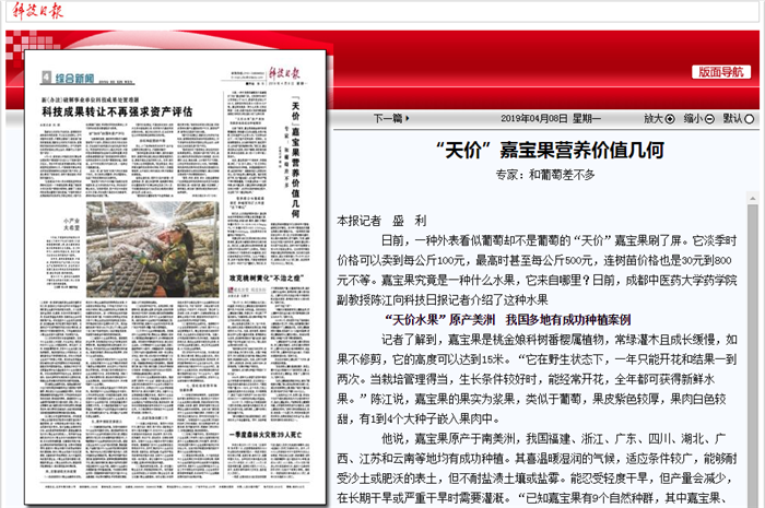 日前,一种外表看似葡萄却不是葡萄的“天价”嘉宝果刷了屏。它淡季时价格可以卖到每公斤100元,最高时甚至每公斤500元,连树苗价格也是30元到800元不等。嘉宝果究竟是一种什么水果,它来自哪里?日前,beat365平台唯一官网药学院副教授陈江向科技日报记者介绍了这种水果