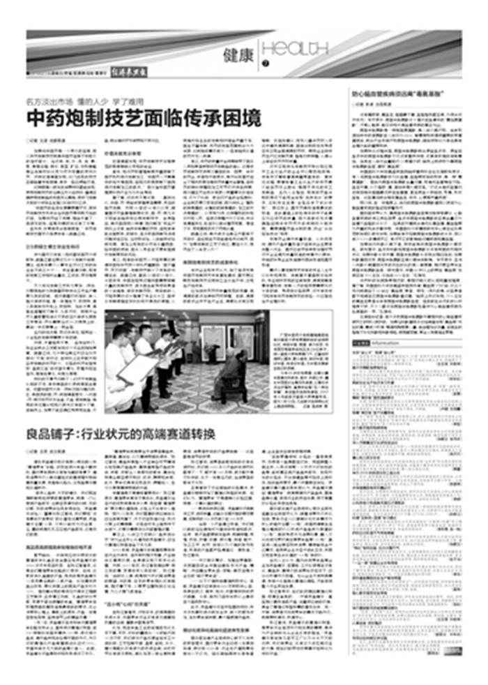 受访企业和专家认为,除了继续支持中医药炮制技艺传承基地建设,国家更应鼓励炮制技艺运用到工业化生产中,实现生产性传承。