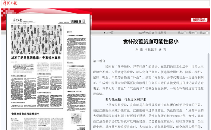 “怀疑自己贫血,正确的做法是寻求血液科医生的帮助。”刘松山说,在贫血这件事上,切忌盲目补气血、补铁、乱服保健品,应保证合理饮食、均衡营养,无需特别食补,要西医辨病、中医辨证,结合起来标本兼顾。