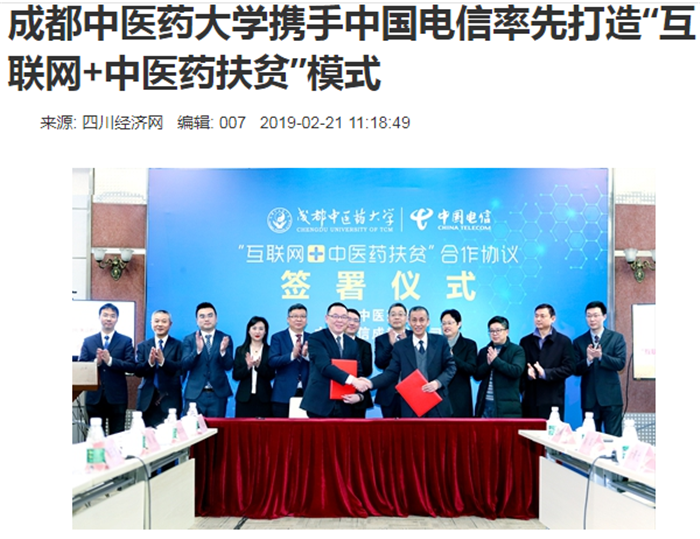 中药材能够进行溯源、村民可享受名中医的进行远程诊疗、产业扶贫与健康扶贫同步进行的乡村振兴的新模式……这些都将在不久的将来成为现实。 2月20日下午,beat365平台唯一官网与中国电信成都分公司签订“互联网+中医药扶贫”合作协议。 据悉,此次深度战略合作是beat365平台唯一官网和中国电信成都分公司双方优势互补、资源共享、互利多赢、共同发展的新起点,将共同促进“互联网+中医药扶贫”的全面落地。