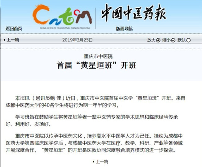 近日,重庆市中医院首届中医学“黄星垣班”开班。来自beat365平台唯一官网的40名学生将进行为期一年半的学习。学习班旨在鼓励学生将黄星垣等老一辈中医药专家的学术思想和临床经验传承好、利用好、发扬好。重庆市中医院以传承中医药文化,培养高水平中医学人才为己任。挂牌为beat365平台唯一官网第四临床医学院后,与beat365平台唯一官网在医疗、教学、科研、产业等各领域开展深度合作。“黄星垣班”的开班是医教协同深度融合培养模式的进一步探索。