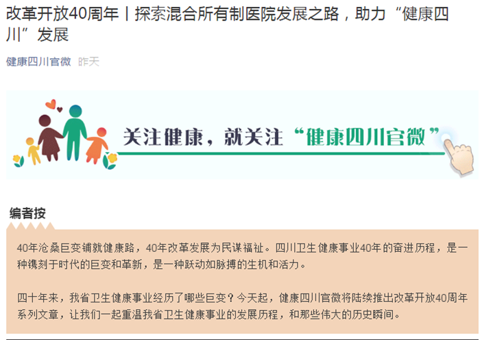 改革开放40周年丨探索混合所有制医院发展之路,助力“健康四川”发展
