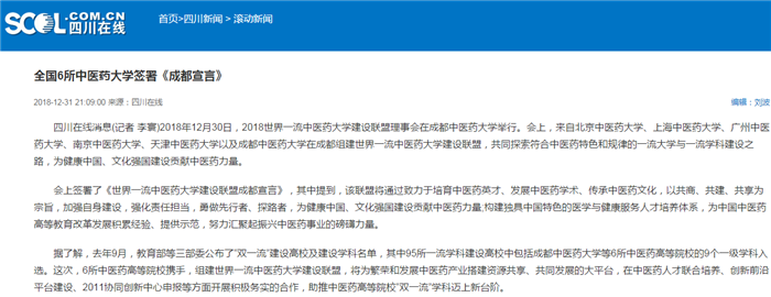 全国6所中医药大学签署《成都宣言》