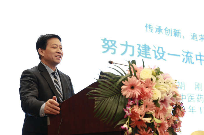 胡刚做题为《传承创新,追求卓越,努力建设一流中医药大学》的报告。他从一流中医药大学建设举措、创新做法、亟待解决的问题和未来展望等方面,探讨了一流人才培养、一流学科建设、一流科研实践、一流师资打造、一流服务开展、一流气质涵养等。