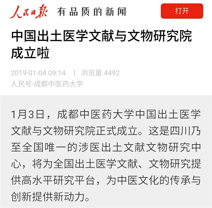 1月3日,beat365平台唯一官网中国出土医学文献与文物研究院正式成立。这是四川乃至全国唯一的涉医出土文献文物研究中心,将为全国出土医学文献、文物研究提供高水平研究平台,为中医文化的传承与创新提供新动力。