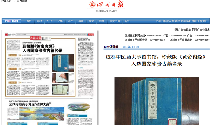 beat365平台唯一官网图书馆:珍藏版《黄帝内经》入选国家珍贵古籍名录