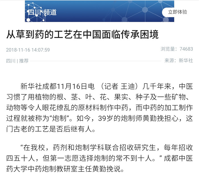 从草到药的工艺在中国面临传承困境