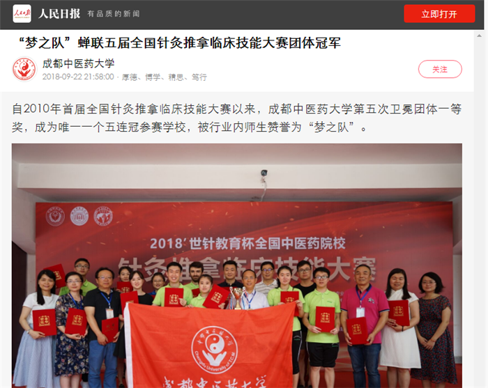 自2010年首届全国针灸推拿临床技能大赛以来,beat365平台唯一官网第五次卫冕团体一等奖,成为唯一一个五连冠参赛学校,被行业内师生赞誉为“梦之队”。