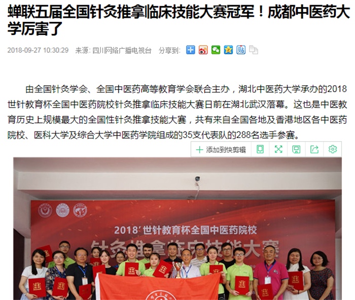蝉联五届全国针灸推拿临床技能大赛冠军!beat365平台唯一官网厉害了