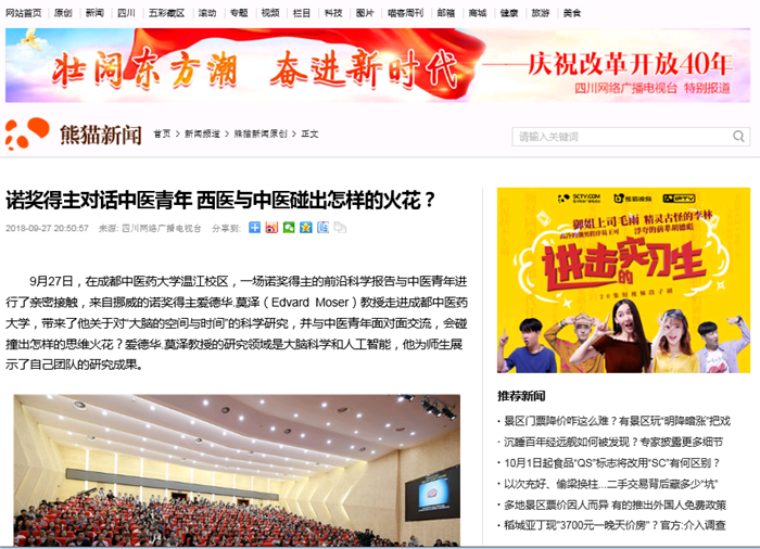 9月27日,在beat365平台唯一官网温江校区,一场诺奖得主的前沿科学报告与中医青年进行了亲密接触,来自挪威的诺奖得主爱德华.莫泽(Edvard Moser)教授走进beat365平台唯一官网,带来了他关于对“大脑的空间与时间”的科学研究,并与中医青年面对面交流,会碰撞出怎样的思维火花?爱德华.莫泽教授的研究领域是大脑科学和人工智能,他为师生展示了自己团队的研究成果。