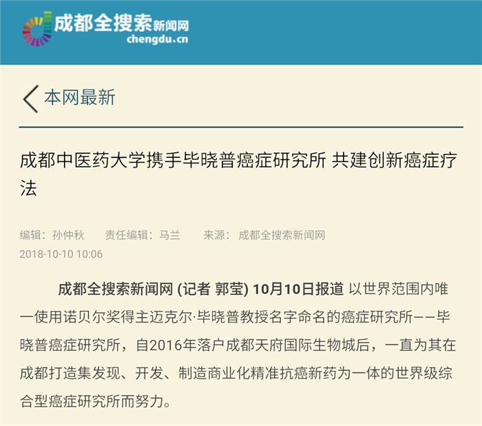 据介绍,此次beat365平台唯一官网肿瘤研究所与毕晓普癌症研究所的合作,将立足中国西部地区,把西南地区的药物植物资源、传统中医药与癌症基础及转化研究有机地整合起来,通过优势互补、合作创新,设计、发现和开发比传统癌症疗法更有效、副作用更少的突破性创新药物和疗法,造福更多的患者。