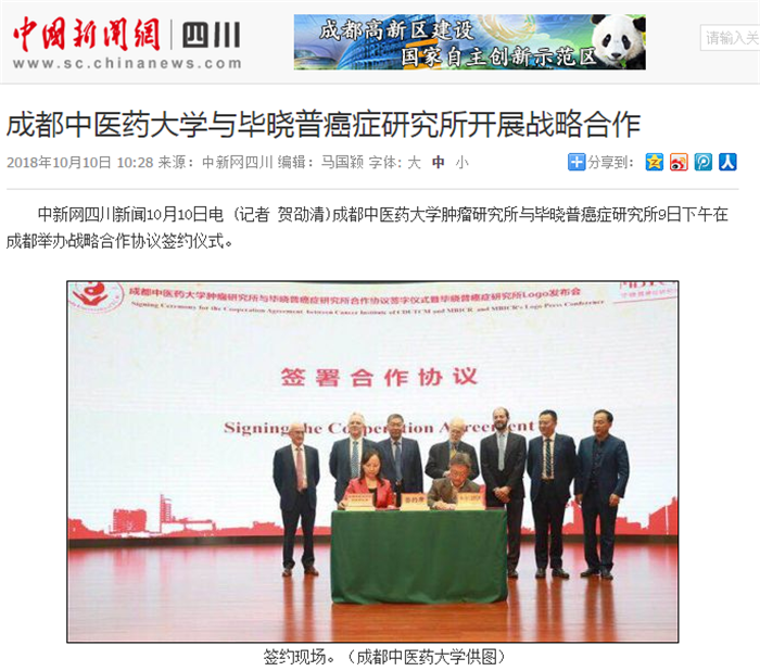 beat365平台唯一官网肿瘤研究所与毕晓普癌症研究所9日下午在成都举办战略合作协议签约仪式。