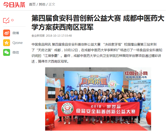 第四届食安科普创新公益大赛 beat365平台唯一官网方案获西南区冠军