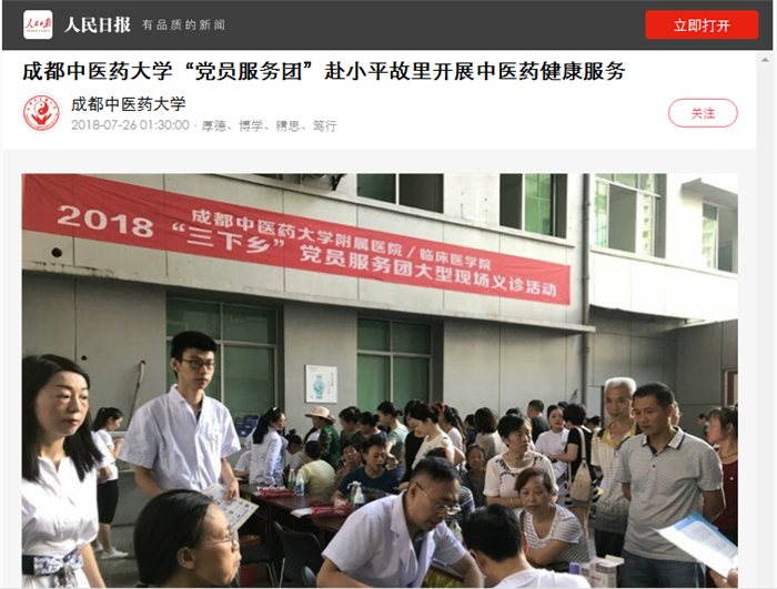 在为期三天的服务活动中,党员服务团深入基层,不畏酷暑,开展了专业严谨、形式多样、热心贴心的中医药健康服务活动,并与当地中医医院就人才培养、资源共享、合作发展等进行了深入交流,受到基层医院和当地群众的欢迎与好评,为推动四川中医药文化传播与发展、推进“健康四川”建设作出积极贡献。