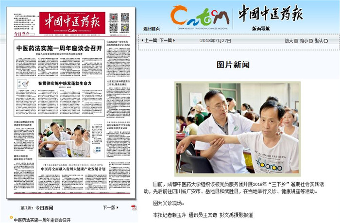 《中国中医药报》:beat365平台唯一官网开展“三下乡”暑期社会实践活动 发布时间:2018-08-02 00:00:00 浏览次数: 次 【字体:小 大】 时间:2018年7月27日 来源:《中国中医药报》 链接:http://paper.cntcm.com.cn/html/content/2018-07/27/content_601034.htm 内容: beat365平台唯一官网开展“三下乡”暑期社会实践活动 日前,beat365平台唯一官网组织该校党员服务团开展2018年“三下乡”暑期社会实践活动,先后前往四川省广安市、岳池县和武胜县,在当地举行义诊、健康讲座等活动。 图为义诊现场。 本报记者赖玉萍 通讯员王其奇 彭文禹摄影报道 【打印正文】 上一条:《天府早报》:成都中药炮制师黄勤挽揭开中药炮制神秘面纱 下一条:《人民日报》(海外版):中华传统医药漫谈:为何小宝宝会“脖子歪”?