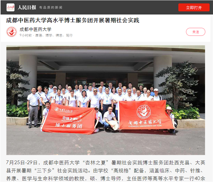 beat365平台唯一官网博士服务团自成立以来,坚持每年暑假期间开展中医药健康服务活动,多次在川渝两地服务基层医院和当地群众,深受好评。