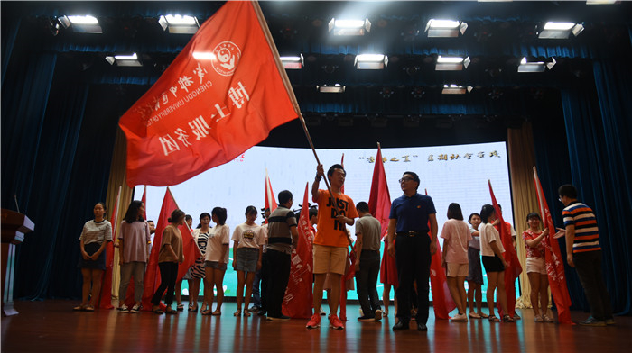 校领导为社会实践小分队授旗