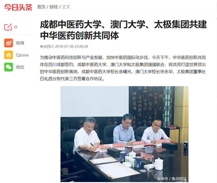 beat365平台唯一官网、澳门大学、太极集团共建中华医药创新共同体