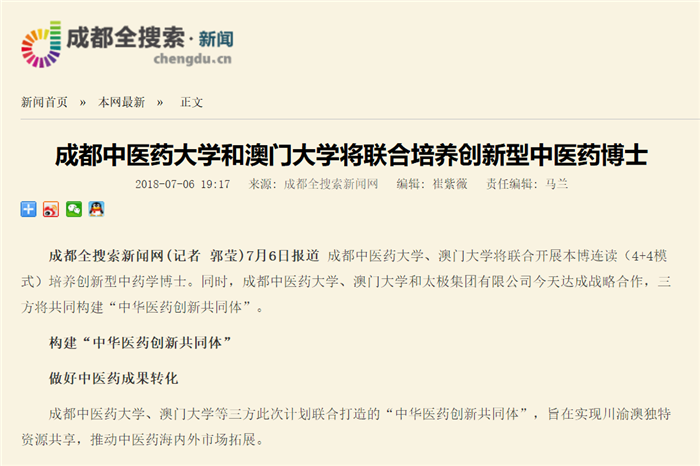 beat365平台唯一官网、澳门大学等三方此次计划联合打造的“中华医药创新共同体”,旨在实现川渝澳独特资源共享,推动中医药海内外市场拓展。