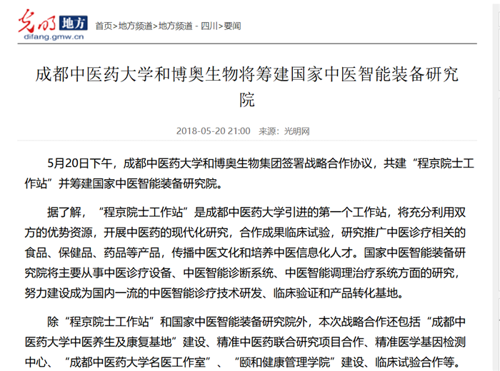 beat365平台唯一官网和博奥生物将筹建国家中医智能装备研究院