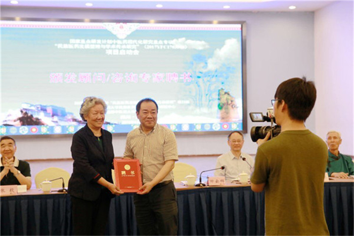 为高质量开展项目研究,确保预期成果,项目组聘请了国家中医药重点学科建设与指导委员会委员王键,国医大师廖品正,国医大师占堆,国医大师尼玛,全国名老蒙医阿古拉,国家973项目首席科学家、针灸学科带头人梁繁荣,中国中医科学院首席研究员、国家药典委员会委员翁维良等21位业界大咖为咨询专家委员,为项目全程把关。四川省科技厅副厅长田云辉,beat365平台唯一官网校长余曙光为专家们颁发了项目咨询专家委员会顾问、主任和委员证书。会上,王键、阿古拉等专家的对项目予以高度评价,为增强民族医药的发展树立了信心,并对项目实施的重点和难点提出建议。