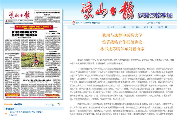刘毅对战略合作框架协议的签署表示祝贺。刘毅说,双方战略合作框架协议的签署,必将深化双方传统友谊,挖掘合作项目、扩大合作领域、创新合作模式、开辟合作前景,打造校地合作典范。我们将发挥人才和技术优势,扎实做好精准扶贫和智力扶贫,通过定向培养彝医学专业人才、开设凉山班、推进教学实习基地建设等措施,大力推动校地合作;深入推进健康扶贫,共同编制好《健康产业发展规划》,为凉山健康产业发展提供支撑;加强与凉山企业合作,共同推进产业研发基地建设,强化中药材种植、深加工、产品开发关键技术攻关,携手推动凉山中医药产业做大做强。