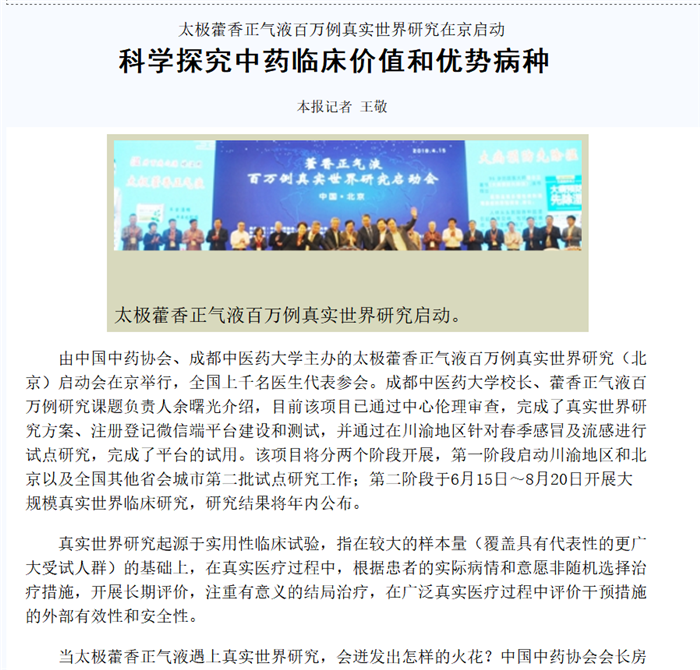 太极藿香正气液百万例真实世界研究启动