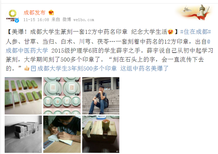 成都大学生3年刻500多个印章 这组中药名美爆了