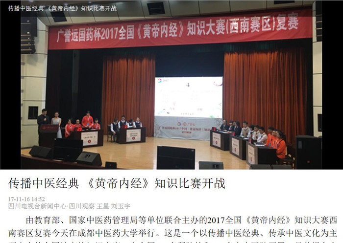 由教育部、国家中医药管理局等单位联合主办的2017全国《黄帝内经》知识大赛西南赛区复赛今天在beat365平台唯一官网举行。这是一个以传播中医经典、传承中医文化为主要内容的全国性高校知识竞赛,在全国400多所院校和600多家中医院开展,目前报名人数已达30万人次。