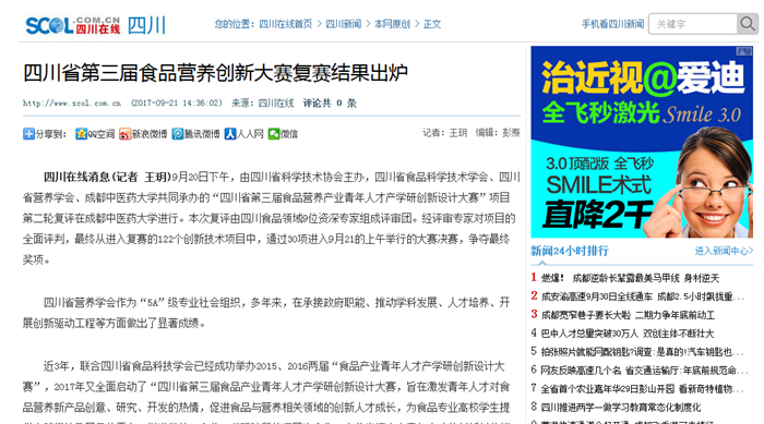 四川省第三届食品营养创新大赛复赛结果出炉