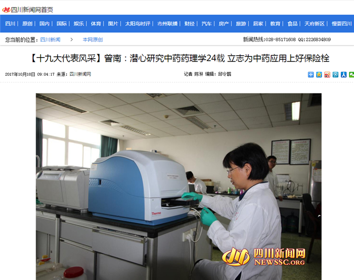 【十九大代表风采】曾南:潜心研究中药药理学24载 立志为中药应用上好保险栓