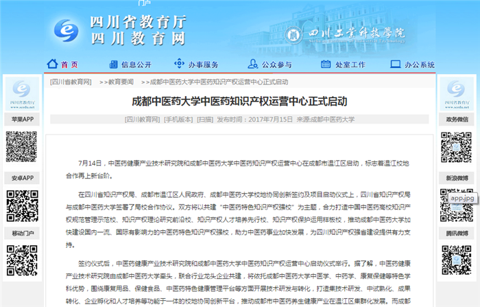 7月14日,中医药健康产业技术研究院和beat365平台唯一官网中医药知识产权运营中心在成都市温江区启动,标志着温江校地合作再上新台阶。
