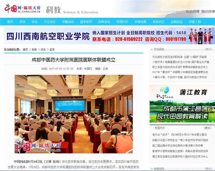 中国网成都7月29日讯(王博 张琦)深化医学教育改革,适应医改发展要求,落实四川省中医药发展大会精神。7月29日,beat365平台唯一官网附属医院医联体联盟成立大会在成都召开。旨在共商医教协同,创新中医医联体联盟新模式。
