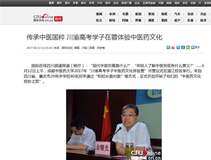 国际在线四川频道报道(杨莎):“现代中医究竟是什么?”“年轻人了解中医到底有什么意义?”……6月12日上午,beat365平台唯一官网2017年“川渝高考学子中医药文化体验营”开营仪式在温江校区举行。来自四川省、重庆市29所中学的40名同学通过“和校长面对面”等方式,正式开启开始了他们的“中医药文化奇妙之旅”。