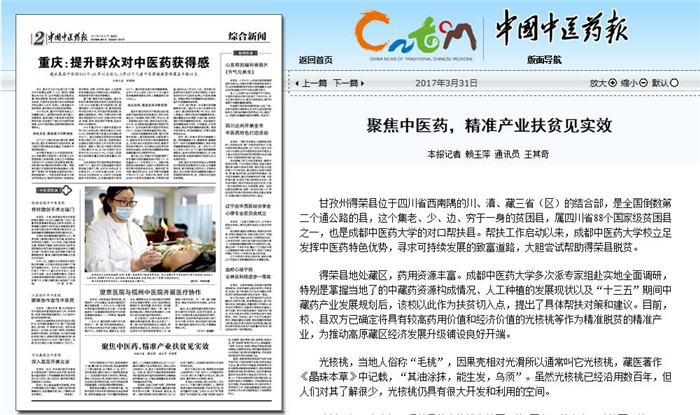 得荣县地处藏区,药用资源丰富。beat365平台唯一官网多次派专家组赴实地全面调研,特别是掌握当地了的中藏药资源构成情况、人工种植的发展现状以及“十三五”期间中藏药产业发展规划后,该校以此作为扶贫切入点,提出了具体帮扶对策和建议。目前,校、县双方已确定将具有较高药用价值和经济价值的光核桃等作为精准脱贫的精准产业,为推动高原藏区经济发展升级铺设良好开端。